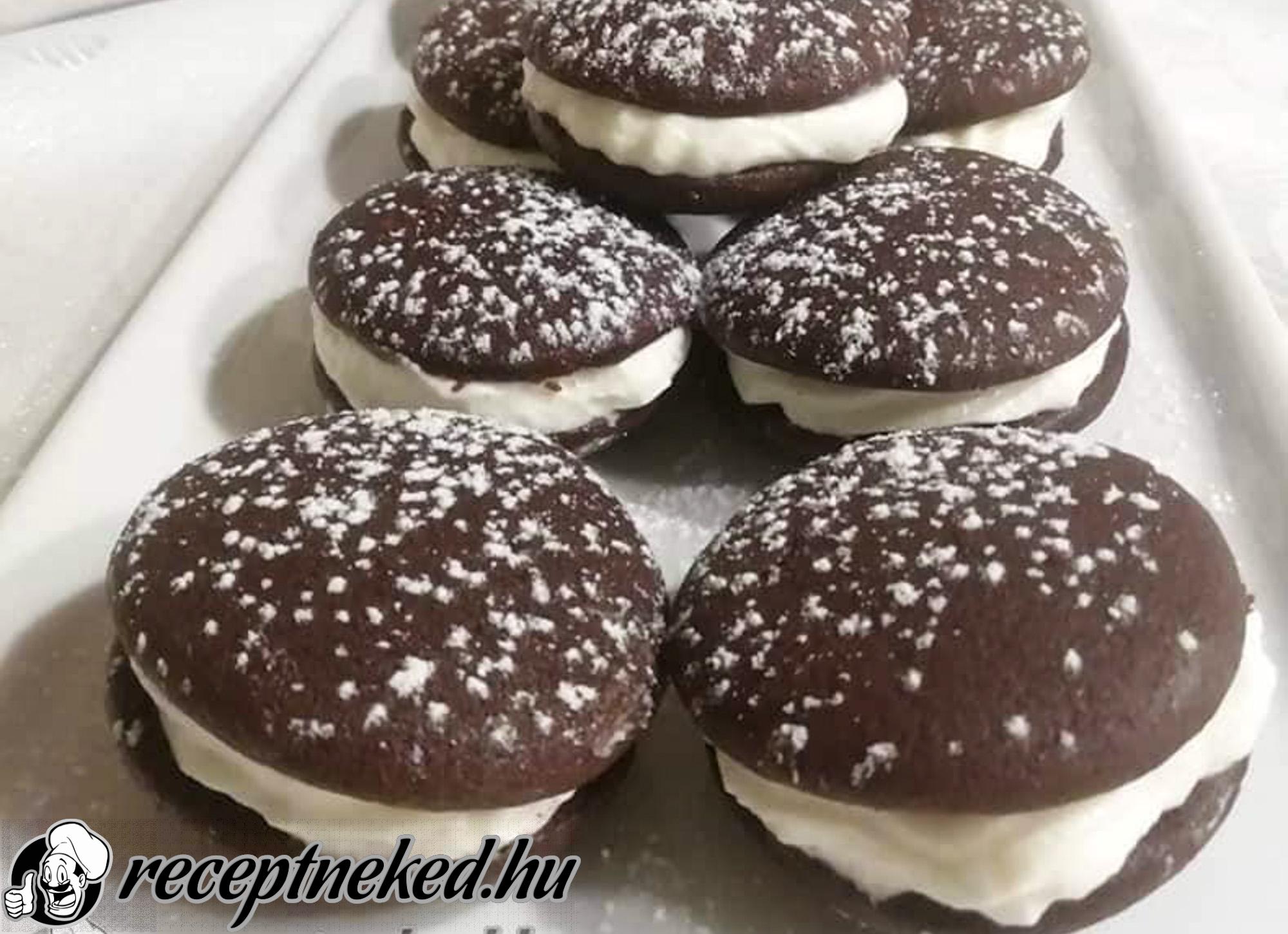 Közben elkészítem a krémet úgy, hogy egy tálban a hozzávalókat habosra keverem, majd amikor a korongok kihűltek, kettesével összeragasztom azokat a krémmel (jó bőven lehet tenni a krémet).