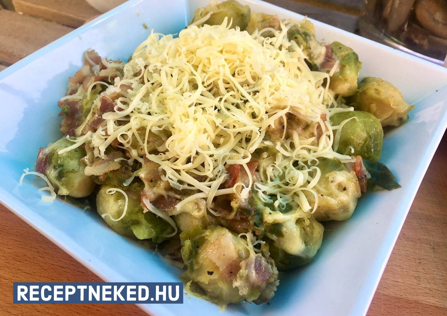 A tetejére reszelt sajtot szórunk és 180 fokra előmelegített sütőben 35-40 perc alatt megsütjük.