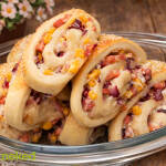 A tésztát lisztezett felületen kinyújtjuk, és kb. 8 cm-es négyzetekre vágjuk.
