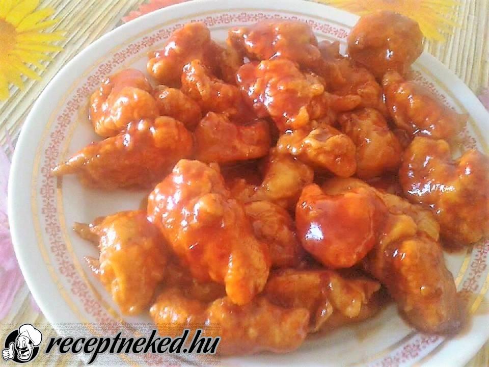 Kevés olajon megpirítjuk a csíkokra vágott csirkét, majd beletesszük a zöldségeket és felöntjük a szójaszósszal és az alaplével.