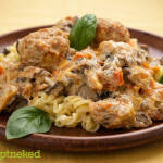 Betoljuk a 200 fokra előmelegített sütőbe és kb 30-35 perc sütjük. Ekkor kivesszük, rátesszük a golyókra a mozzarella szeleteket és további 10 perc alatt ráolvasztjuk.
