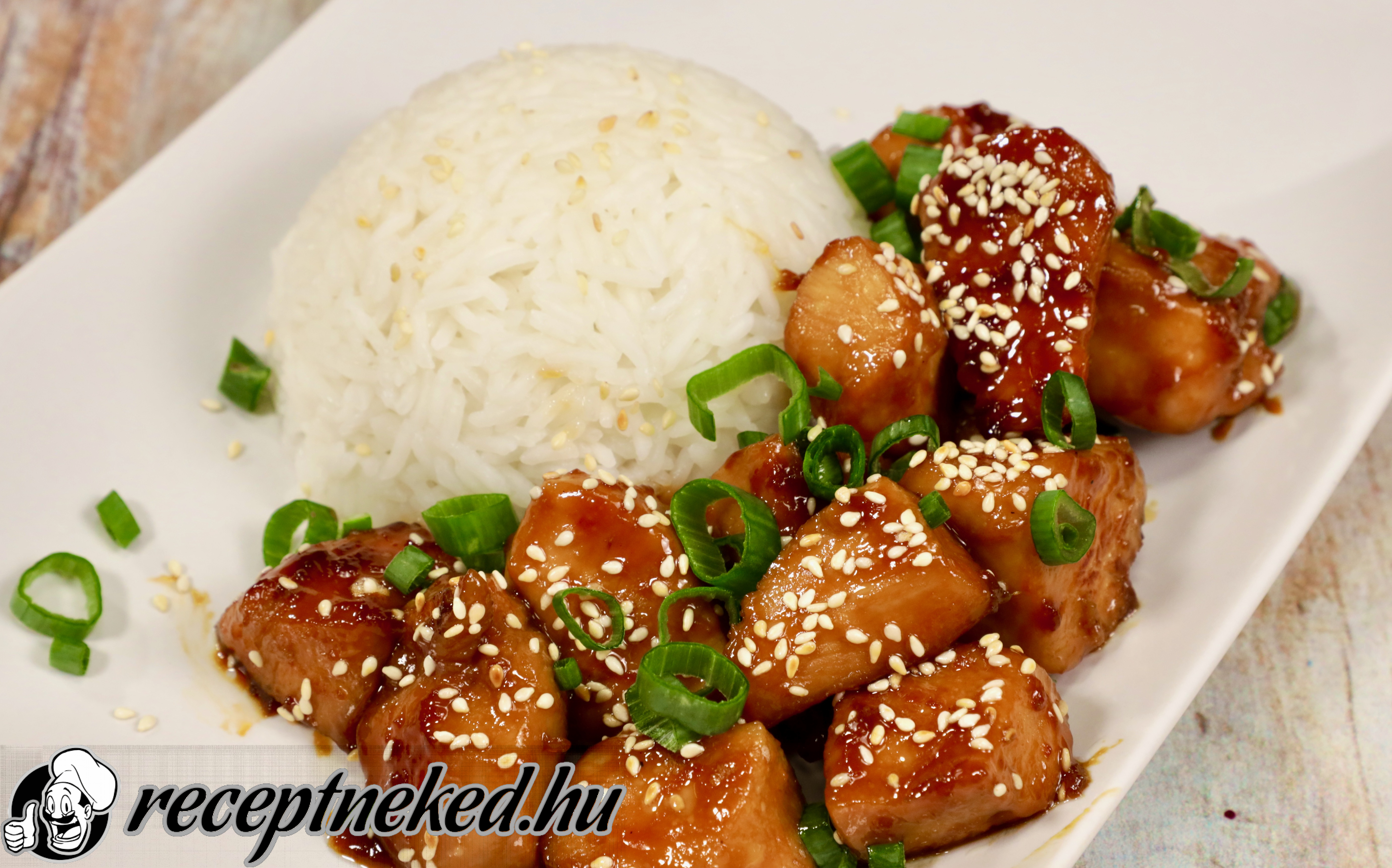 A csirkemell falatnyi darabokra vágjuk majd tálba rakjuk. Sózzuk, borsozzuk, hozzákeverünk 1 evőkanálnyi étkezési keményítőt és annyi vizet, hogy jó sűrű masszát kapjunk. A húst 5-10 percig hagyjuk a pácban.