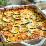 Egy közepes tepsit kivajazunk és belesimítjuk a ragut, majd a tetejére kenjük az ízesített tejfölt.