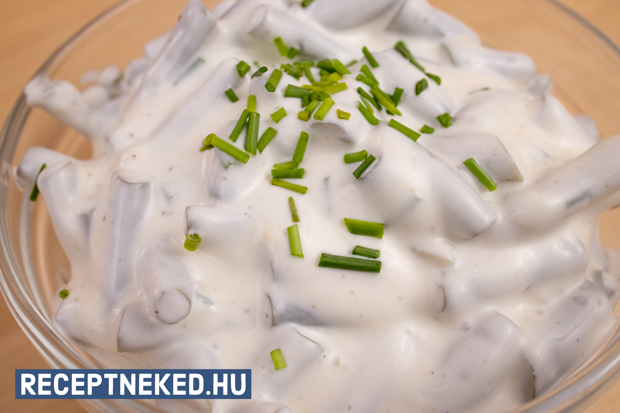 Ezután tegyük be 1-2 órára a hűtőbe, hogy az ízek kellően összeérjenek.