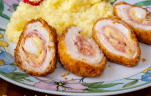 Sajttal-sokával töltött csirkemell tekercs