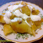 Tálaláskor ráteszem a tejfölt és rászórom a szalonna pörcöket.