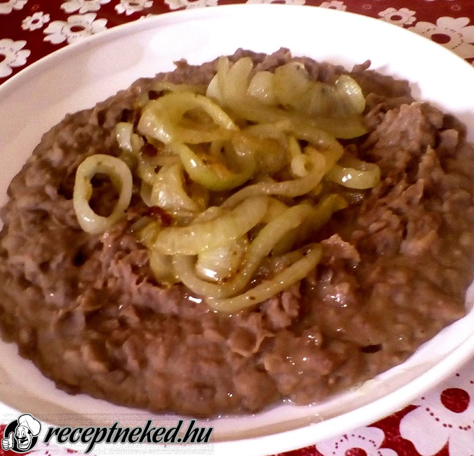 Egy edényben az olajon a hagymát és a káposztát megdinszteljük, közben megborsozzuk.
