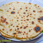 Amíg a burgonya fől elkészítjük a tésztát. A hozzávalókat kimérjük, annyi langyos vizet teszünk hozzá, hogy keményebb állagú tésztát kapjunk, ( minél keményebb a tészta, annál jobb ) majd vékonyra elsodorjuk. (Közben felteszünk forrni enyhén sós vizet, amiben a tésztát kifőzzük. ) Ha már jó vékony a tésztánk jól megszórjuk liszttel és szorosan feltekerjük a sodrófára, majd felül a tetején elvágjuk, így egy hosszú téglalap alakú tésztát kapunk. ( fotón látható! )