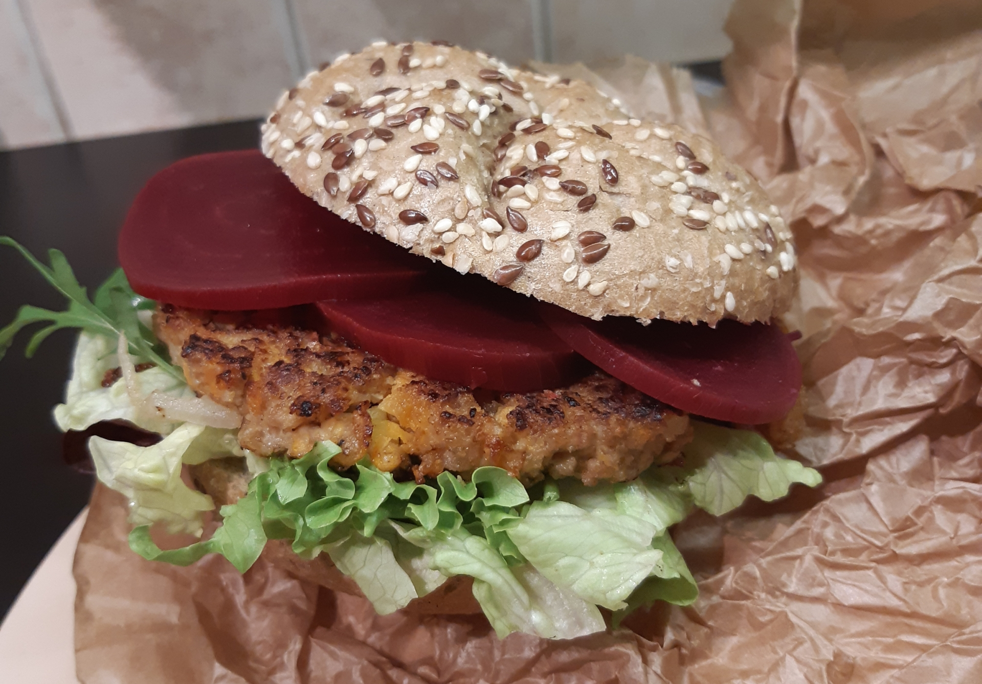 Ezalatt a burgerhez a friss zöldségeket megmossuk és felkarikázzuk.