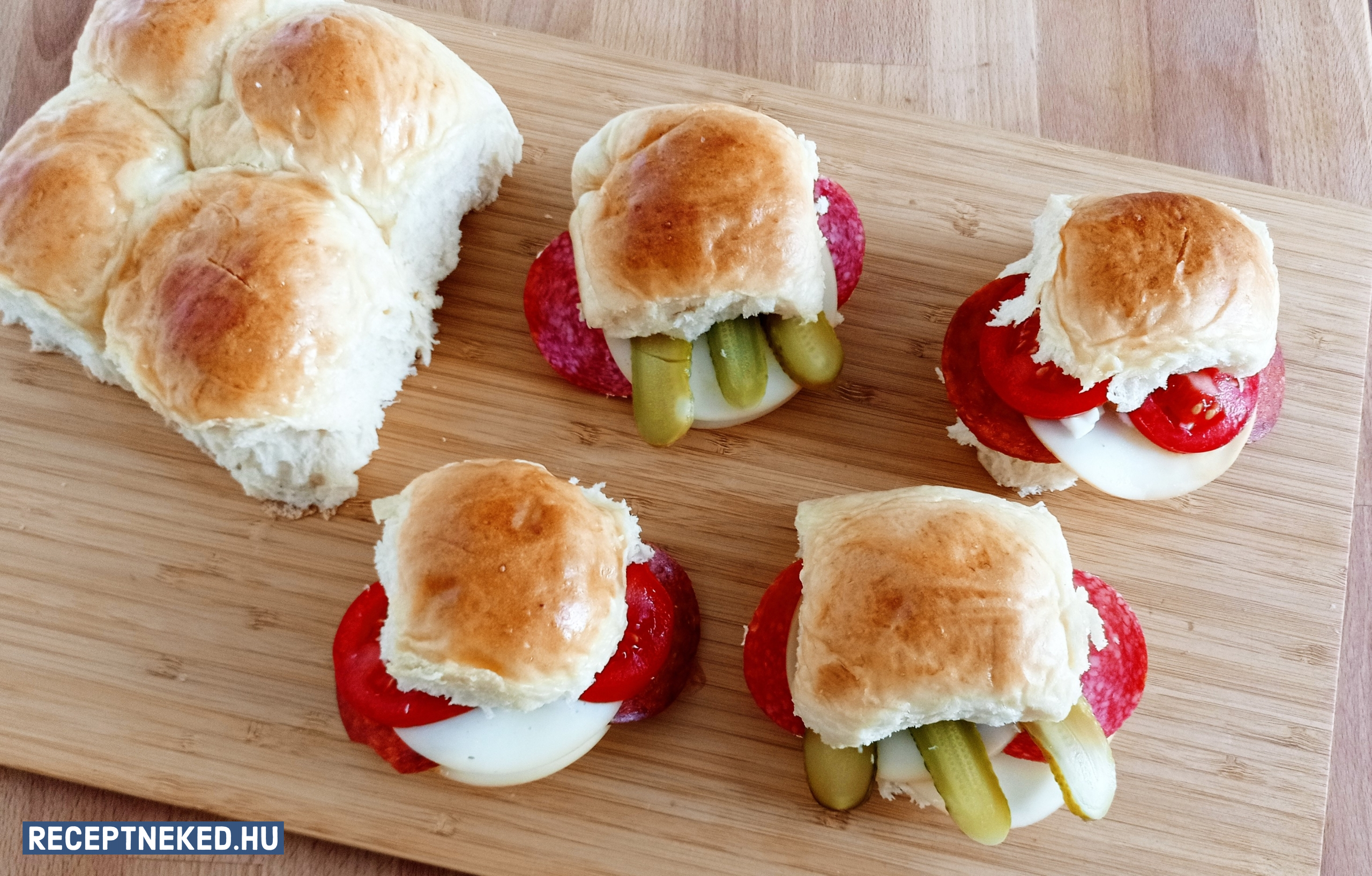 A zsemlék tetejét levágjuk, belsejét kivájjuk és egy tálba halmozzuk. Hozzáadjuk a aprított párizsit és sajtot. Beletesszük a krémsajtot, mustárt, sót, borsot és petrezselymet. Jól összekeverjük és beletöltjük a zsemlékbe.