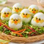 A tojásokat keményre főzzük, kihűlés után hosszában kettévágjuk, és kivesszük a sárgájukat.