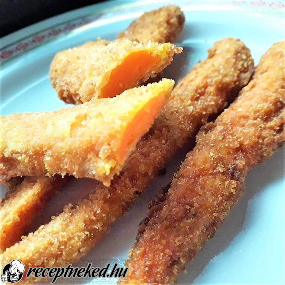 Láttam a tévében egy reklámot, amiben azt mondják, hogy a magyarok mindent kirántanak. Nos, ezzel egyet kell, hogy értsek. Már régóta izgatta a fantáziámat, hogy ha a cukkini és a tök olyan finom ezen a módon elkészítve, akkor milyen lehet a sütőtök. Legutóbbi vásárlásunk alkalmával be is szereztünk egy sonkatököt. Ennek a keskenyebbik és hosszabb részét használtam fel. Kicsit féltem, hogy a kemény zöldség majd átsül-e kellőképpen puhára, de tökéletes lett. DE! a család fenntartásokkal fogadta. Volt, akinek nem jött be a kissé édes zöldség ebben a formában. De én nagyon szerettem.