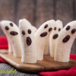Közben a csokit olvasszuk meg és töltsük hab vagy nylonzacskóba és vágjunk a sarkára egy picike kis lyukat. Rajzoljuk meg csokival vagy ételfesték tollal a szellemek arcát. Hagyjuk megszáradni, majd tálaljuk.