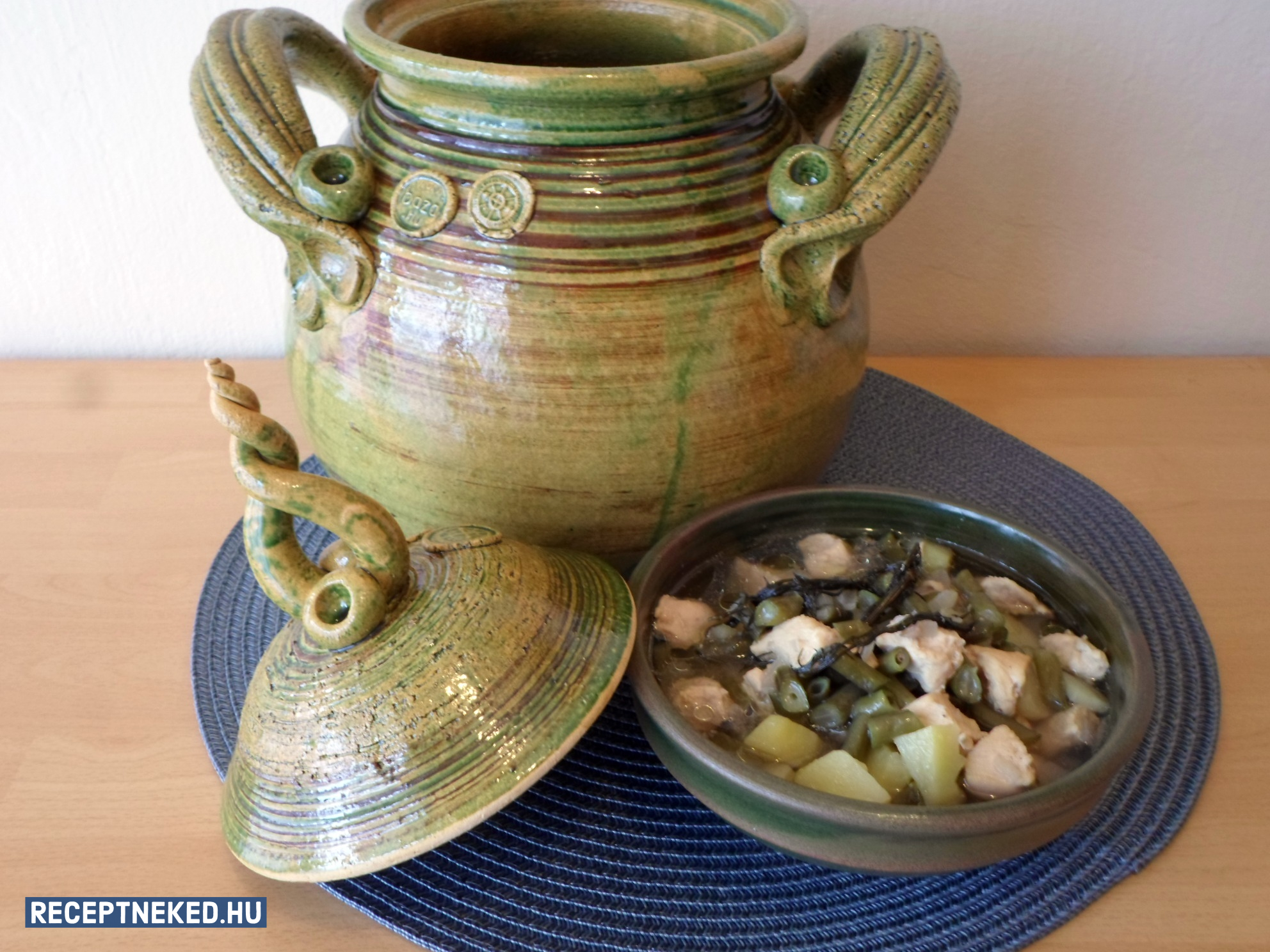 Amikor a hús és a burgonya is megpuhult, világos, petrezselymes rántást készítünk (az olajon megpirítjuk a lisztet, majd az apróra vágott petrezselymet is hozzáadjuk, kevés vízzel felengedjük).