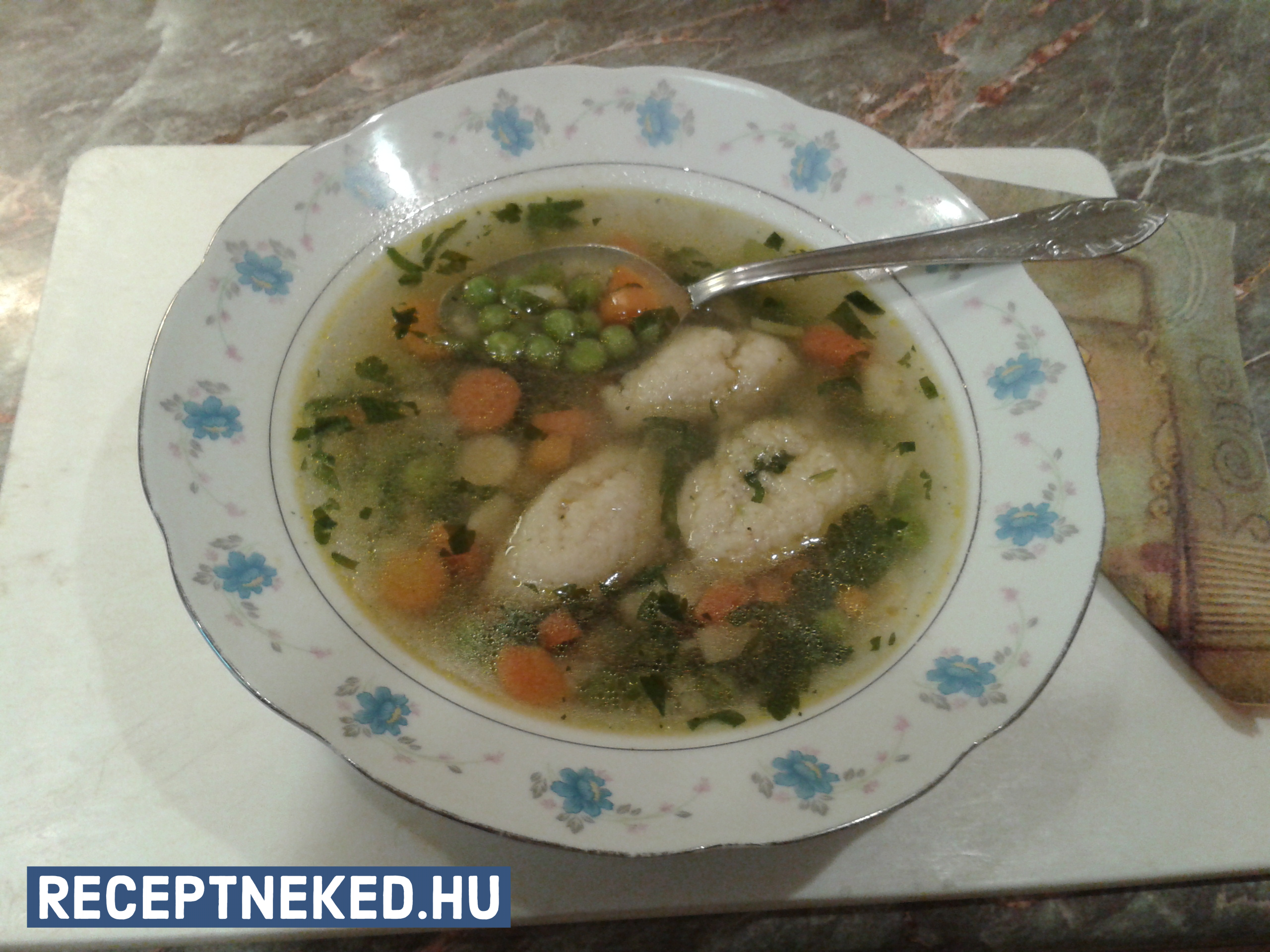 A vége előtt 10 perccel beleszórjuk a tésztát.