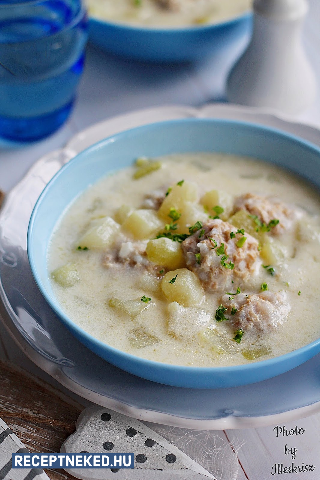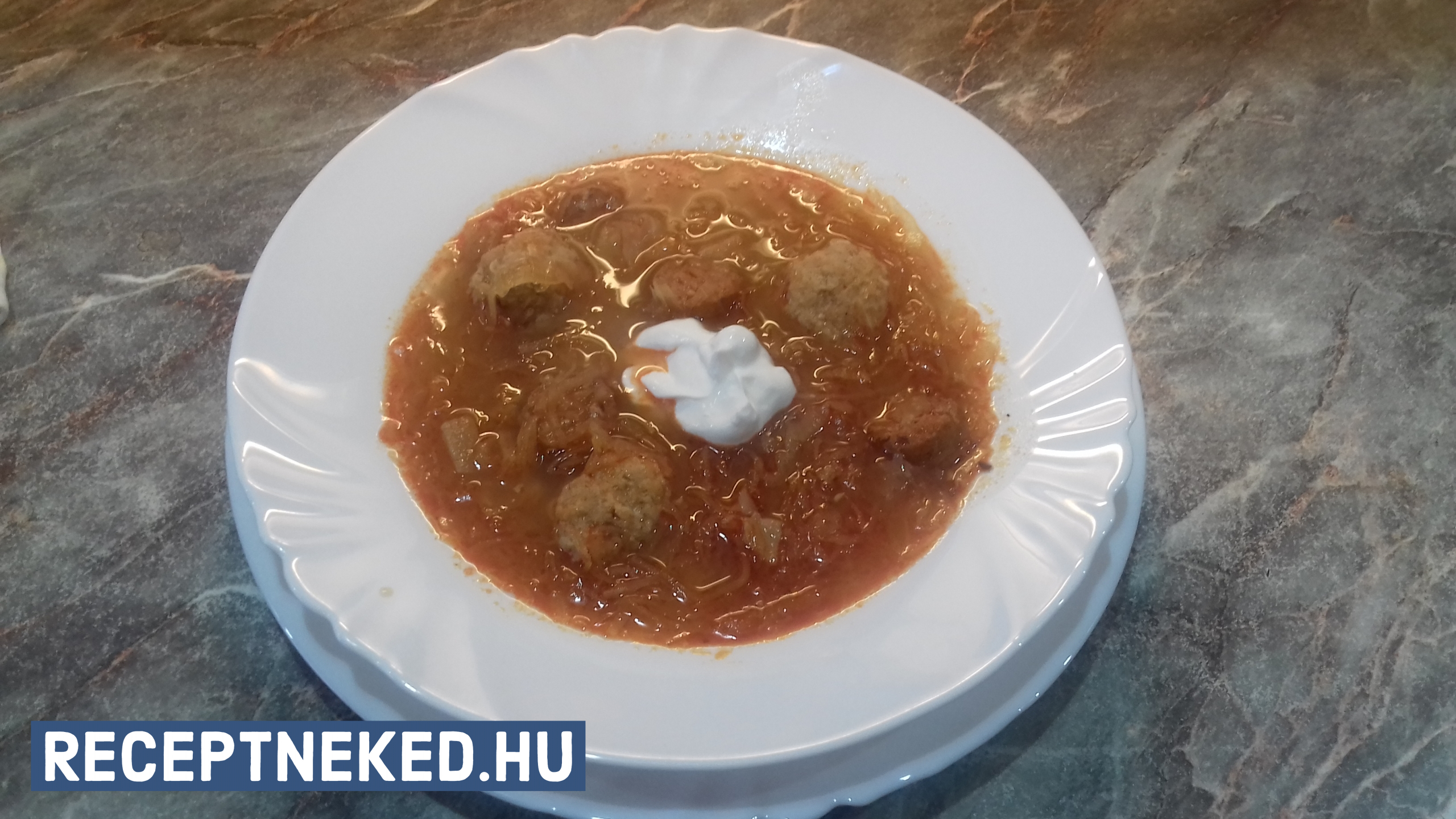 Ezután belehelyezzük a húskeverékből formázott golyókat, és puhára főzzük. Utánaízesítjük, és tejföllel azonnal tálaljuk.