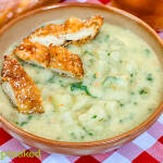 Össze turmixolom az egészet, és pirított zsemlekockával tálalom.