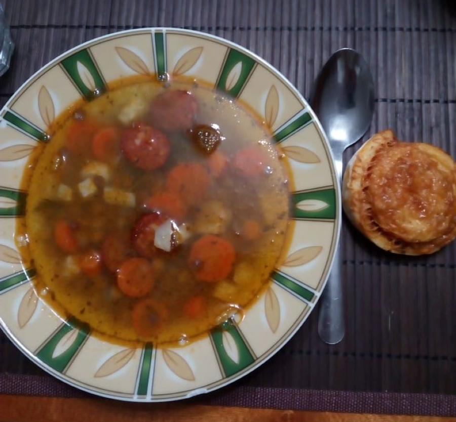 A lencsét mindenképpen áztassuk be előtte. A zöldséget karikázzuk fel.