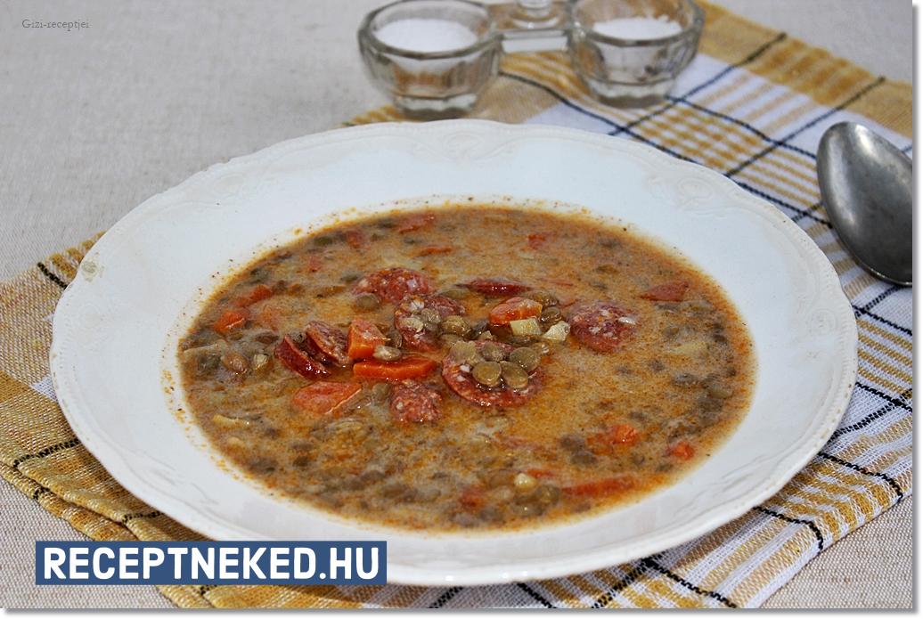 Ebbe a levesbe nem teszünk lisztet, hanem a lencséből kivett hagymák, kevés lé, kevés répa, lencse és 2 kanál ecet segítségével – amit előtte pürésítünk – besűrítjük a levest.