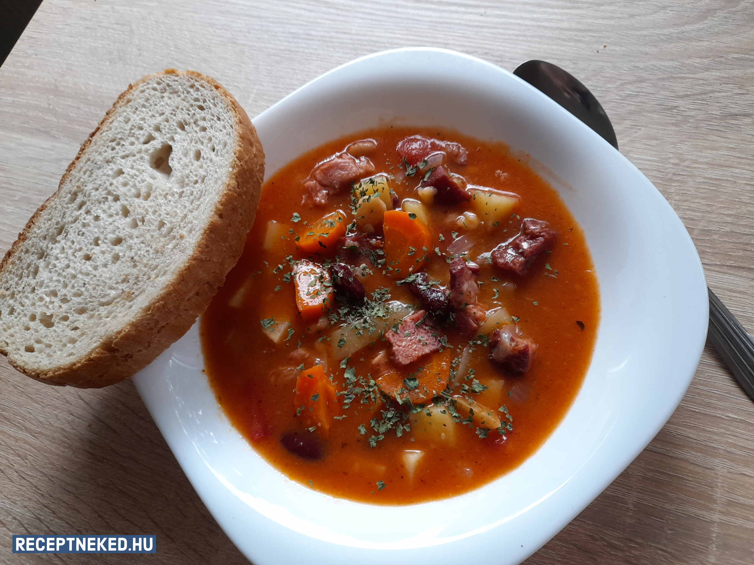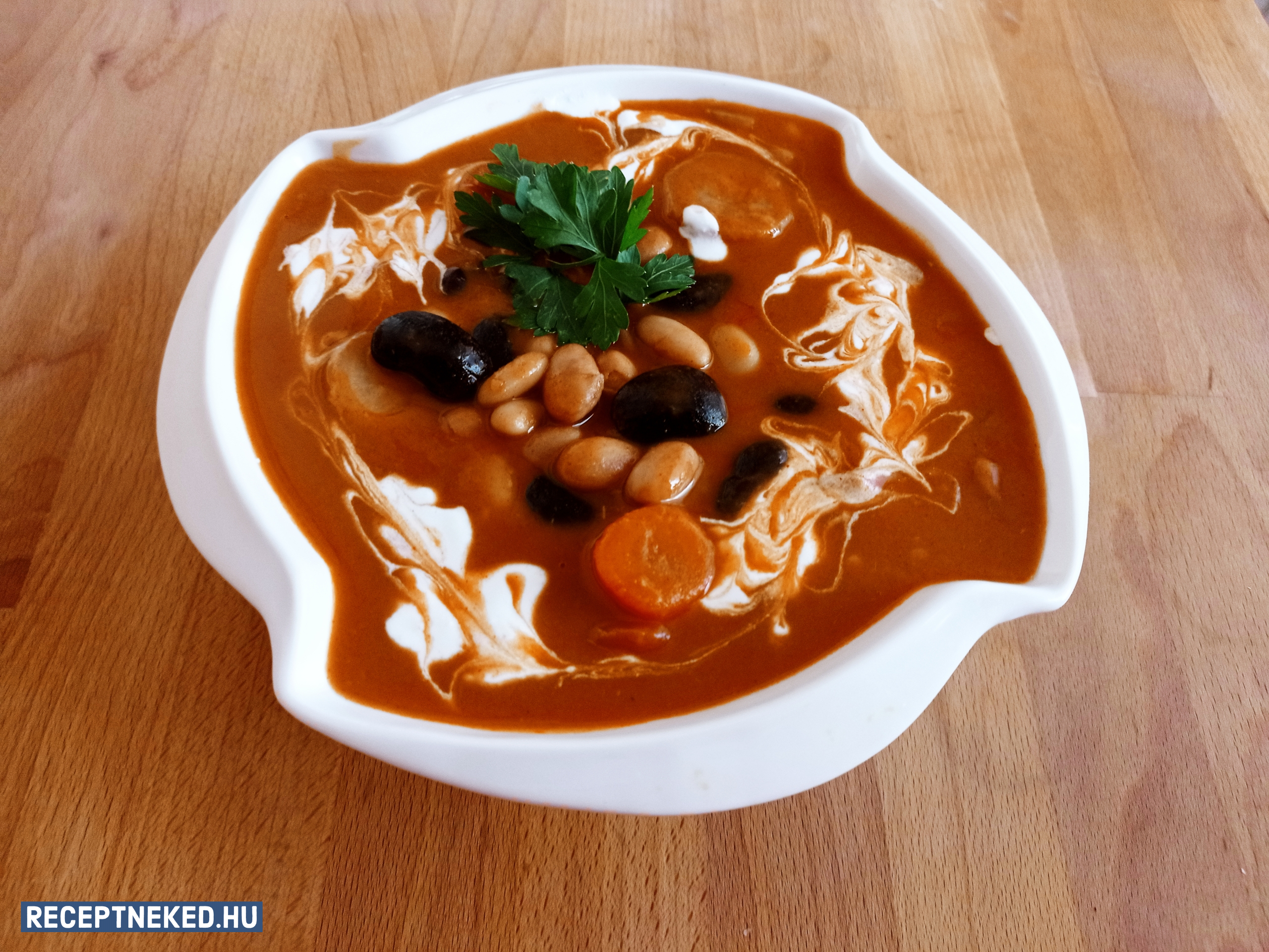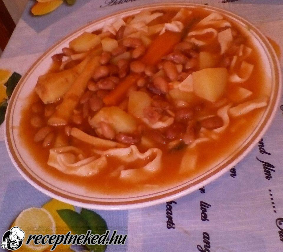 Felengedjük a paradicsomlevessel, ha kell, utánízesítjük és takaréklángon addig főzzük, míg a zöldbab meg nem puhul.