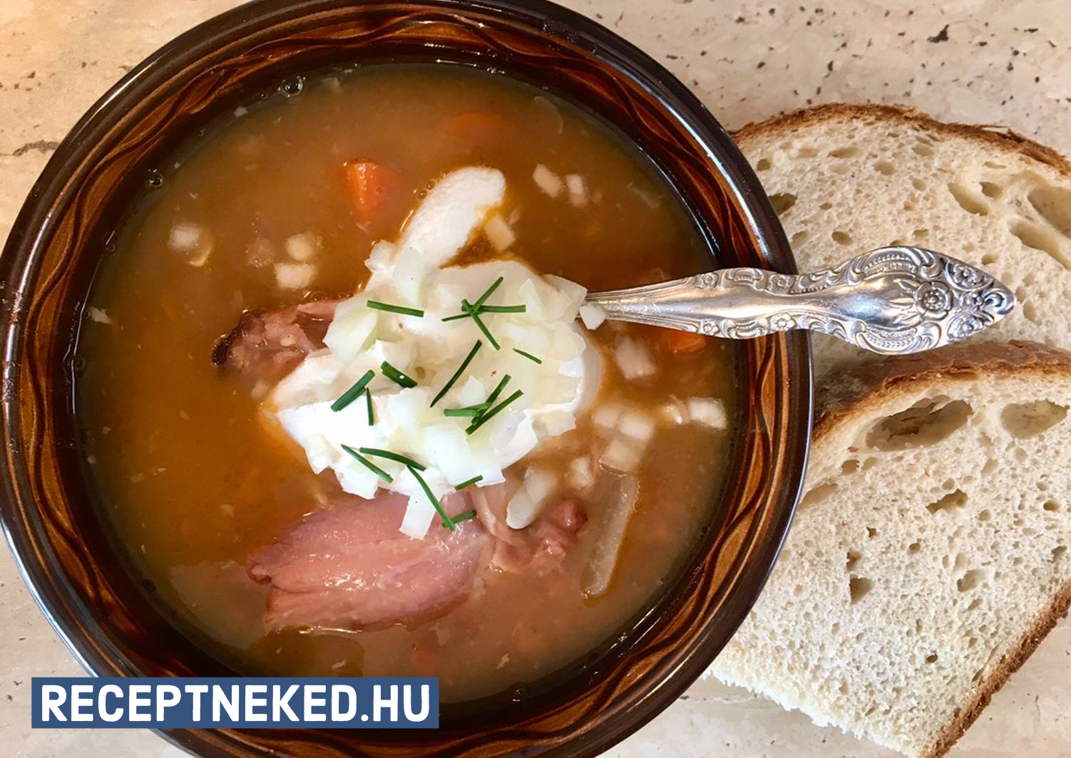 Sózzuk, borsozzuk, belefőzünk egy fej vöröshagymát, egy cikk zellert vagy néhány levél zellerzöldet.