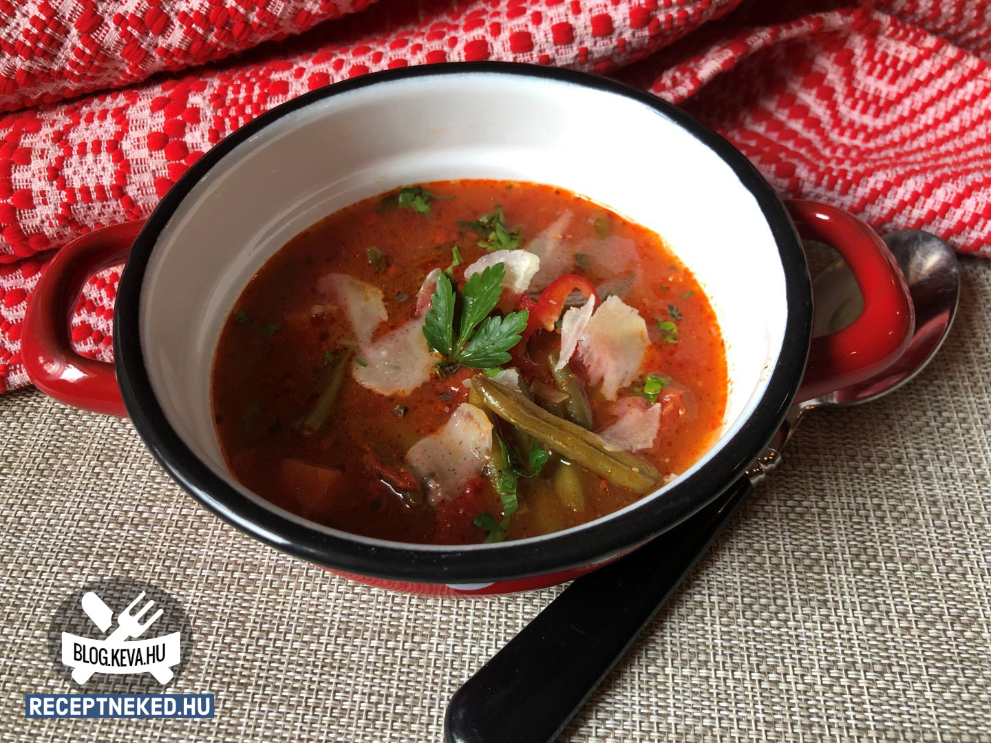 Mikor a zöldségek félig megpuhultak, a levesbe teszem a kockákra vágott krumplit, a kaprot, s ha nem tettem zellert akkor a zellerlevelet, de az el is maradhat.