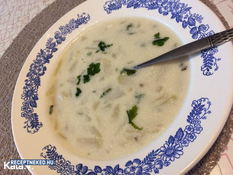 A tejfölt egy kevés forró lével elkeverjük, így öntjük vissza a többi leveshez, és kevergetve megforrósítjuk.