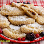 Kis halmokat rakunk rá a közben összekevert túrókrémből vagy más töltelékből, majd a lap másik felét ráhajtjuk és vagy késsel vagy derelyevágóval négyzeteket vágunk a tésztából.