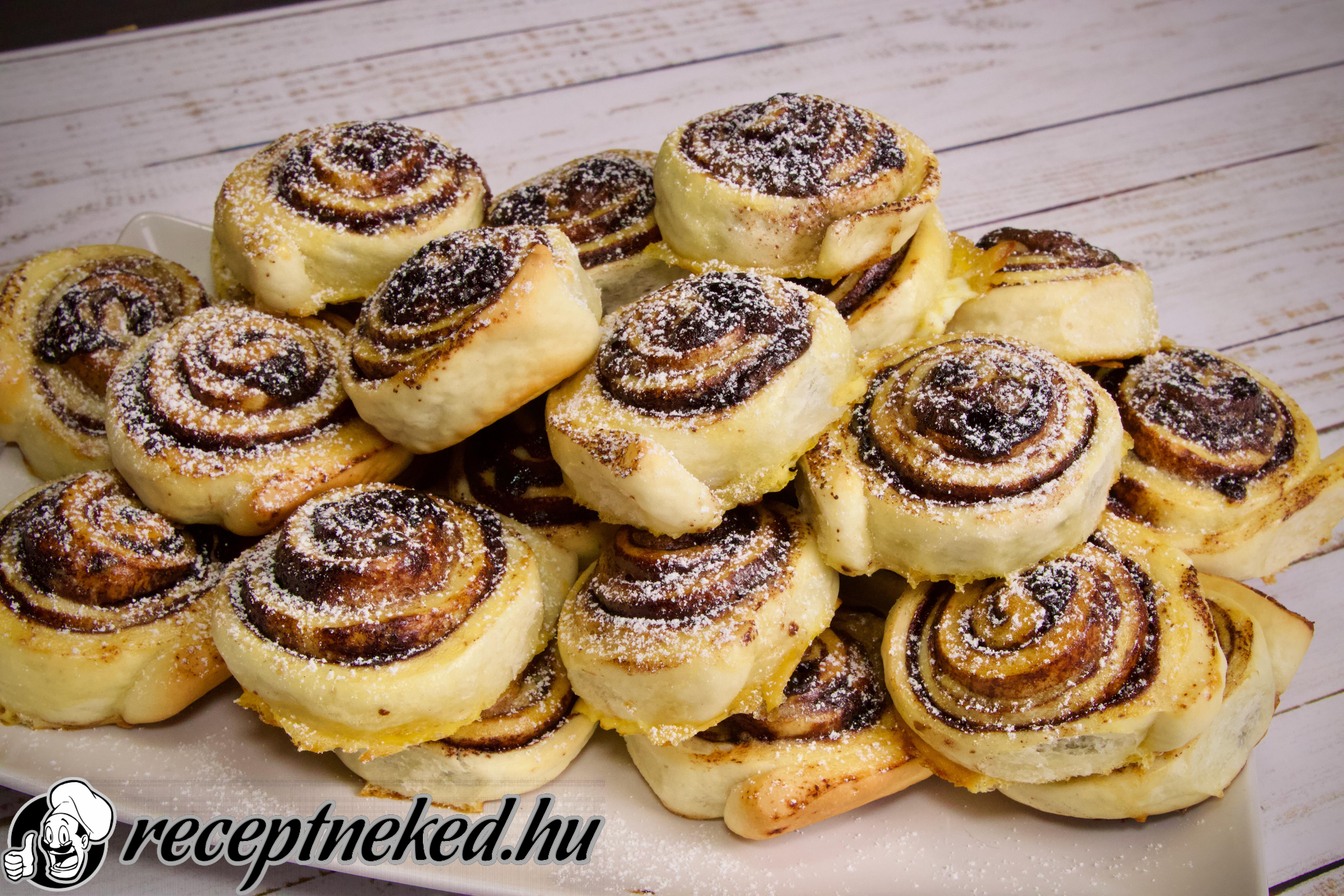 Közben a sütőt melegítsük elő 190 fokra alsó-felső sütéssel. Kb 28-30 perc alatt süssük meg a csigákat.