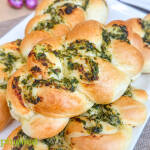 Az egyik gomócot magunk elé tesszük és kb 20*15 cm nagyságú, vékony téglalap alakra nyújtjuk. A téglalapot 6 egyenlő csíkra vágjuk fel és a csíkokat egymás tetejére tesszük. Hosszában, a tészta közepébe mélyen belenyomunk egy hurkapálcát (vagy a kés fokát), hogy oldalt a tésztarétegek kissé szétváljanak, majd egy éles késsel a tészta közepén, hosszában elvágjuk.