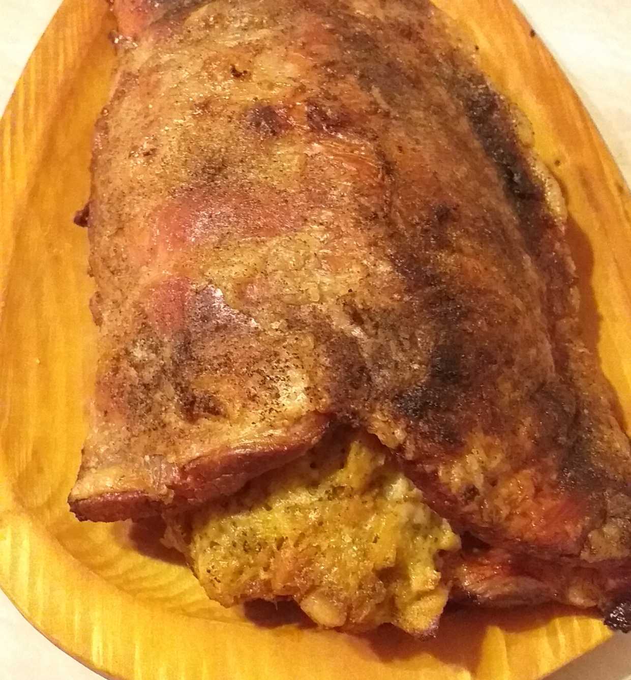 Ízlés szerint ketchuppal, mustárral és majonézzel tálaljuk. Forrón kicsit nehéz étel, de sajnos eteti magát, mert kívül ropogós, belül a vajtól és a szalonna zsírjától finom puha, tehát csalós kaja! :)