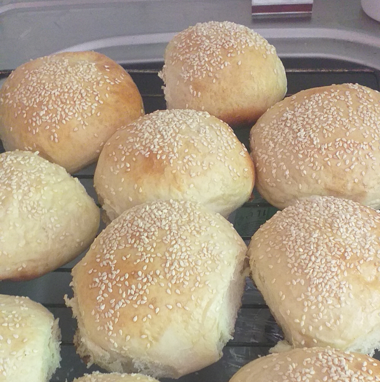 A tojássárgáját tejjel simára keverem és lekenem vele a tésztát, végül szezámmaggal/feketeköménnyel bőven meghintem. 180 fokon kb. 20-30 perc alatt megsül.