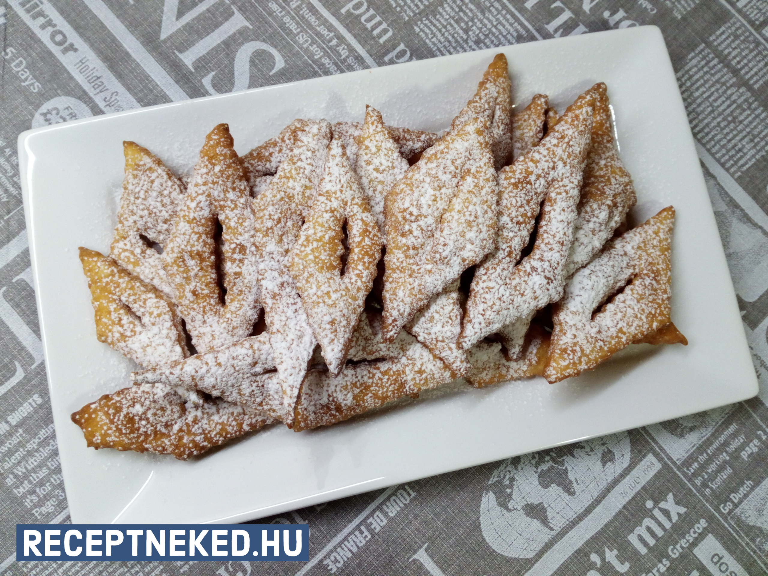 Az olajba téve a felső felét fedővel, fordítás után fedő nélkül sütöttem. Lecsepegtjük a kisült fánkot és vaníliás porcukorral meghintjük.