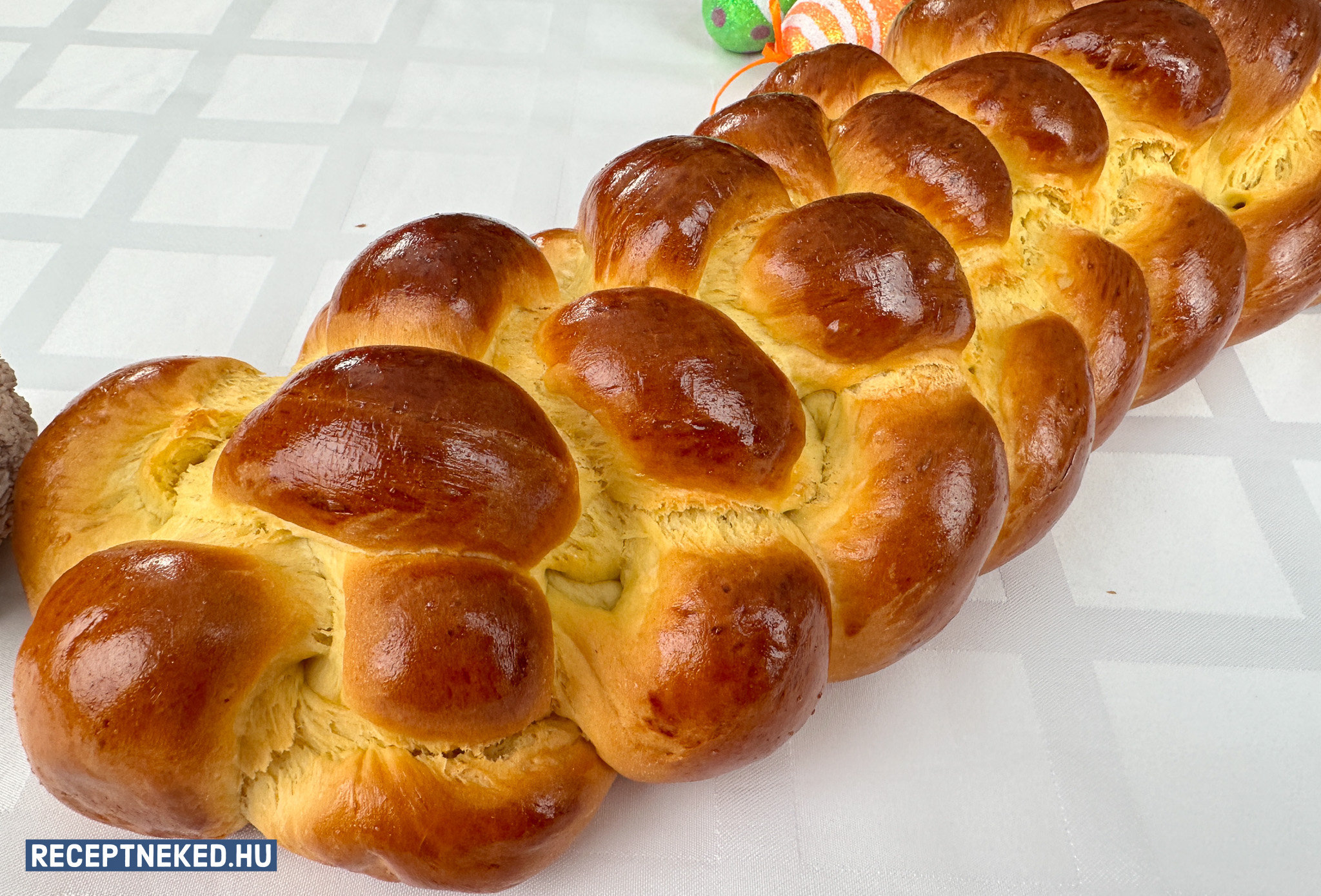 Az élesztőt pici cukorral a melegített tejben felfuttatjuk, és a többi hozzávalóval összegyúrjuk, jól kidolgozzuk.
