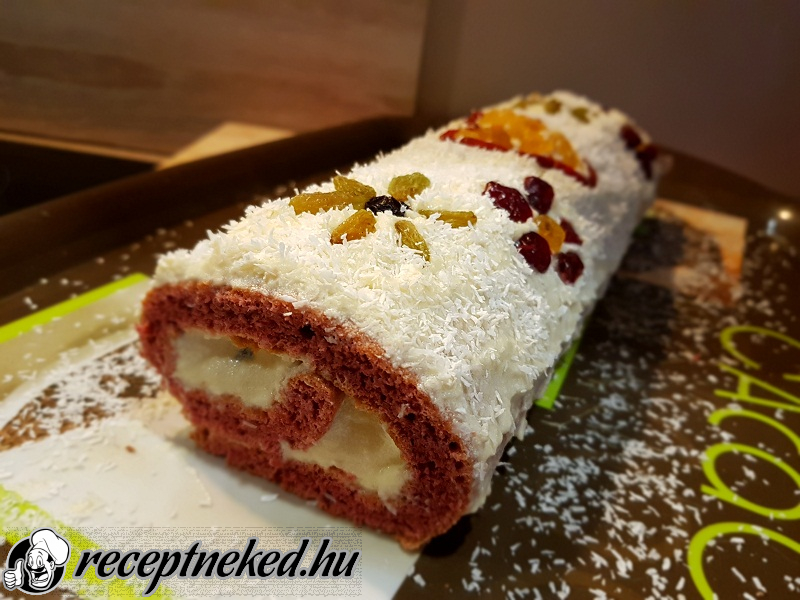 A kinyújtott tésztát kenjük meg a massza felével, tekerjük fel, majd szeleteljük 2 centiméteres darabokra.