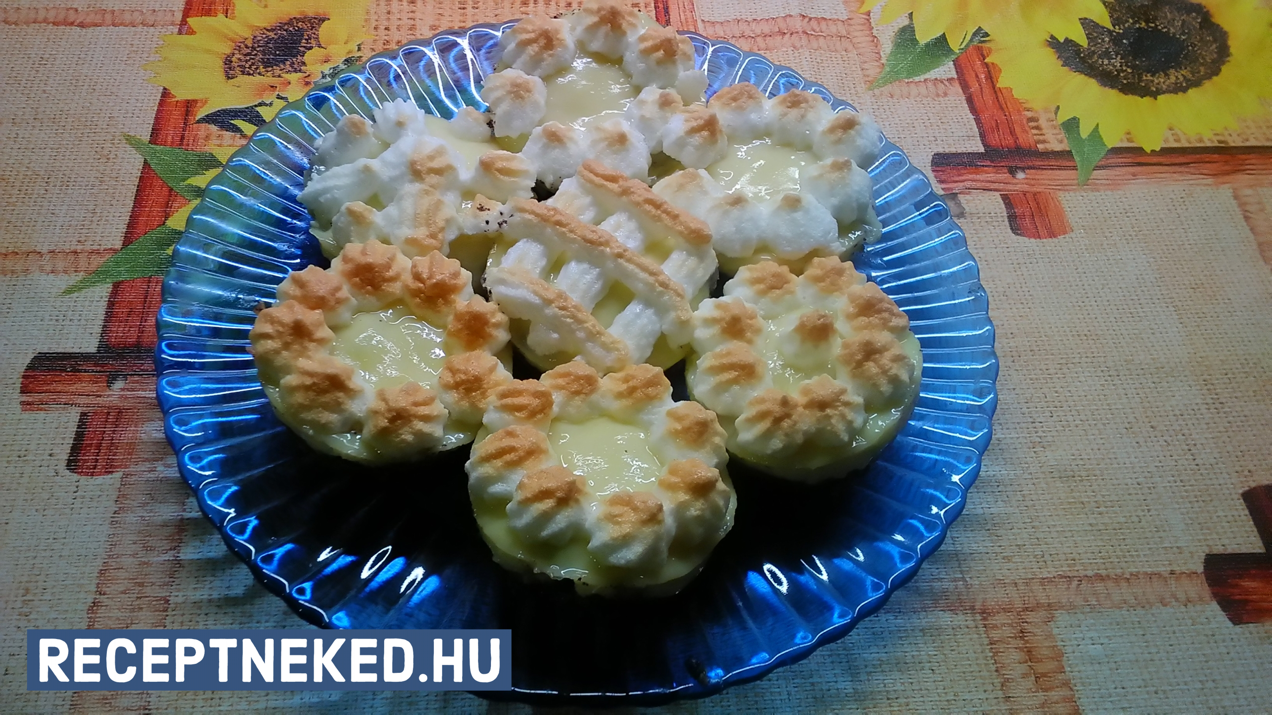A sütőt melegítsük elő 180 fokra, hőlégkeveréssel. A fehérjéket a cukorral verjük kemény habbá. Vagy kanalazzuk a habot a muffinokra, vagy tegyük csillagcsöves habzsákba és díszítsük a habbal a muffinok tetejét ízlés szerint.