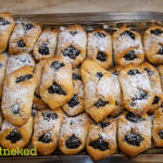Közben melegítsük elő a sütőt 180 fokra. Miután a tésztánk megkelt, lisztezett felületen nyújtsuk ki minél vékonyabbra, kenjük meg a töltelékkel, csavarjuk fel szorosan, ahogyan a bejglit szoktuk, majd vágjuk a rudat kb kétujjnyi vastag szeletekre.