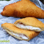 A megkelt tésztát lisztezett felületre borítjuk, és 10 egyenlő részre osztjuk. Mindegyiket kinyújtjuk kb. 15×10 cm-es téglalappá. A közepére tesszük a kolbász-, sajt- és sonkaszeletet – ebben a sorrendben. A hosszabbik oldalait a töltelékre hajtjuk, majd a rövidebb széleket is ráhajtjuk, hogy zárt batyut kapjunk.
