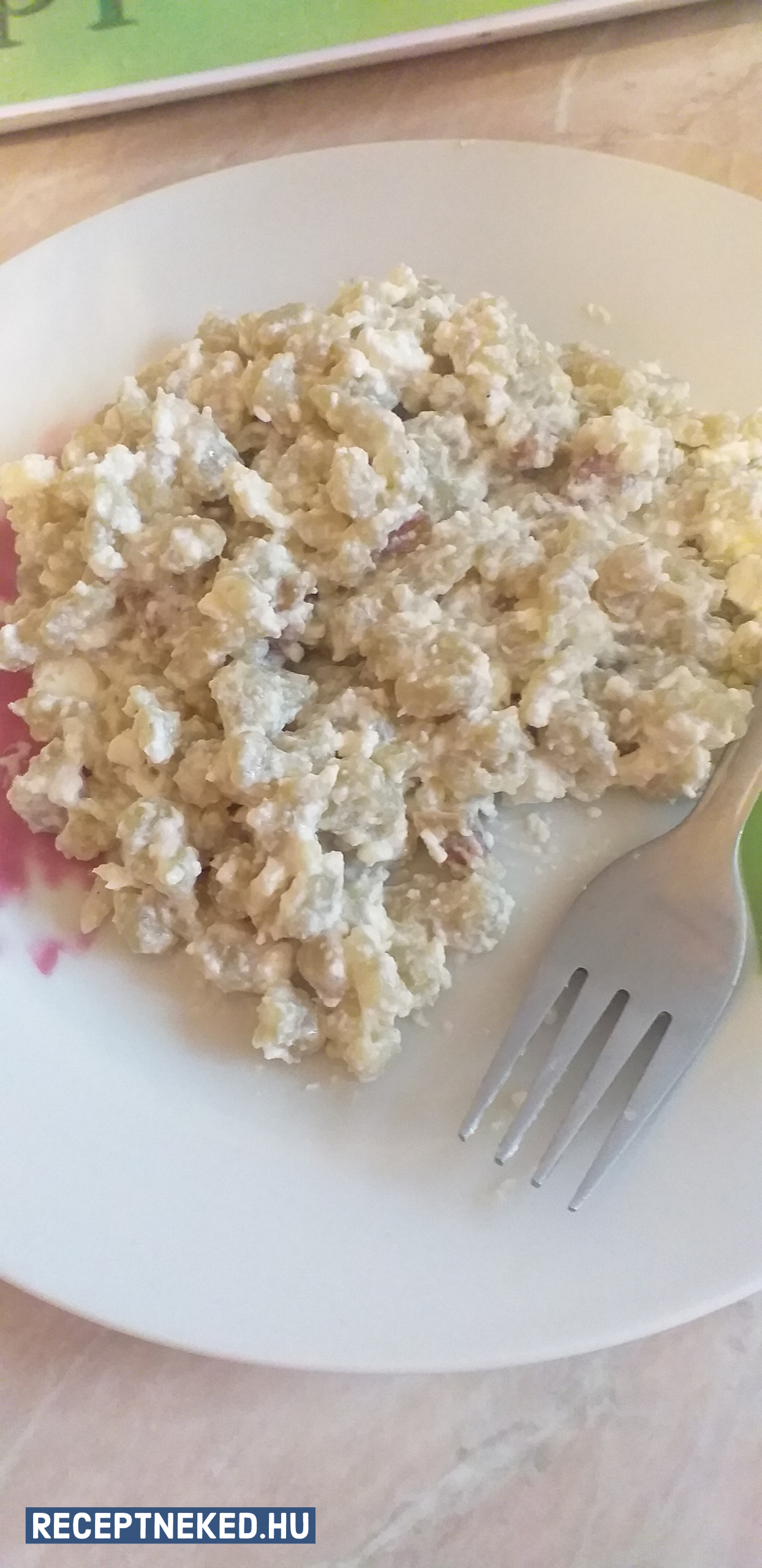 A krumplit héjában megfőzzük, még melegen meghámozzuk, és krumplinyomóval összetörjük.