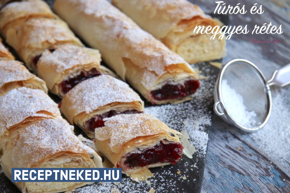 A tésztákat egyenként kinyújtjuk, étolajjal lekenjük és meggyel megszórjuk. Feltekerjük, tepsibe helyezzük és mindegyik rudat étolajjal lekenjük és 200 fokon megsütjük. Amikor szép piros, akkor kész.