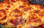 Csirkemáj rukkolás burgonyapürével és karamellizált hagymával