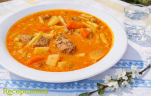 Raguleves, pálinkával flambírozott marhahúsból (Mikszáth módra)