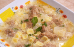 Gombás sertés pörkölt teljes kiőrlésű nokedlivel