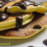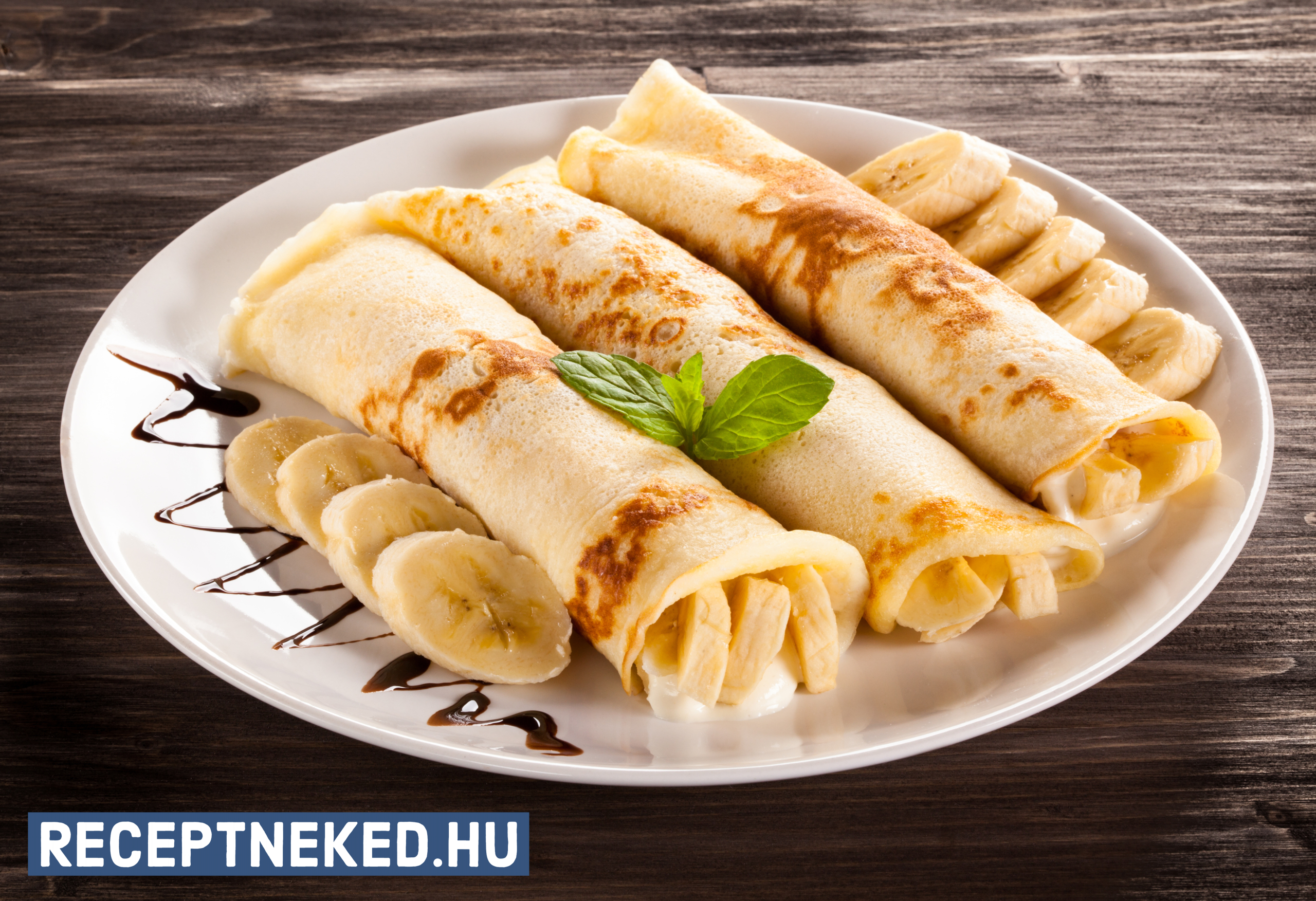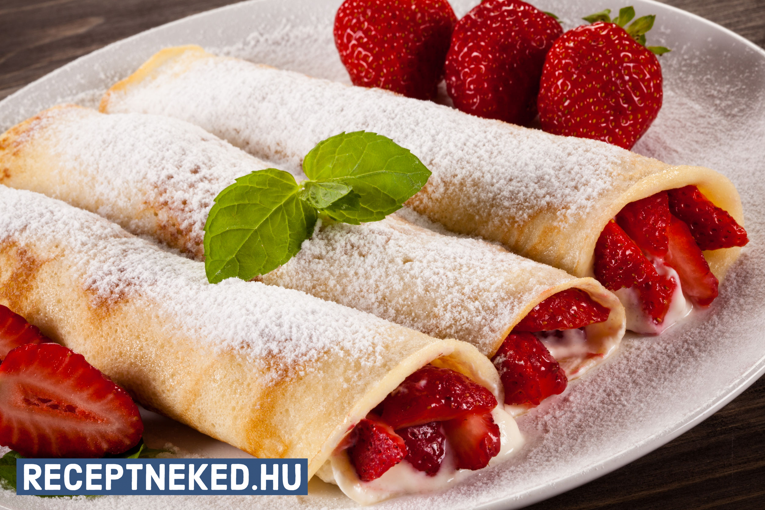 A meleg palacsintákat megtöltjük kakaóporral, összetekerjük.