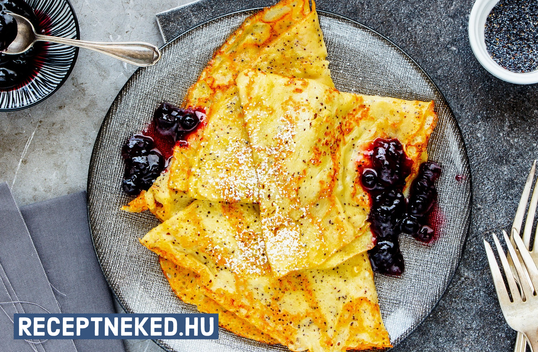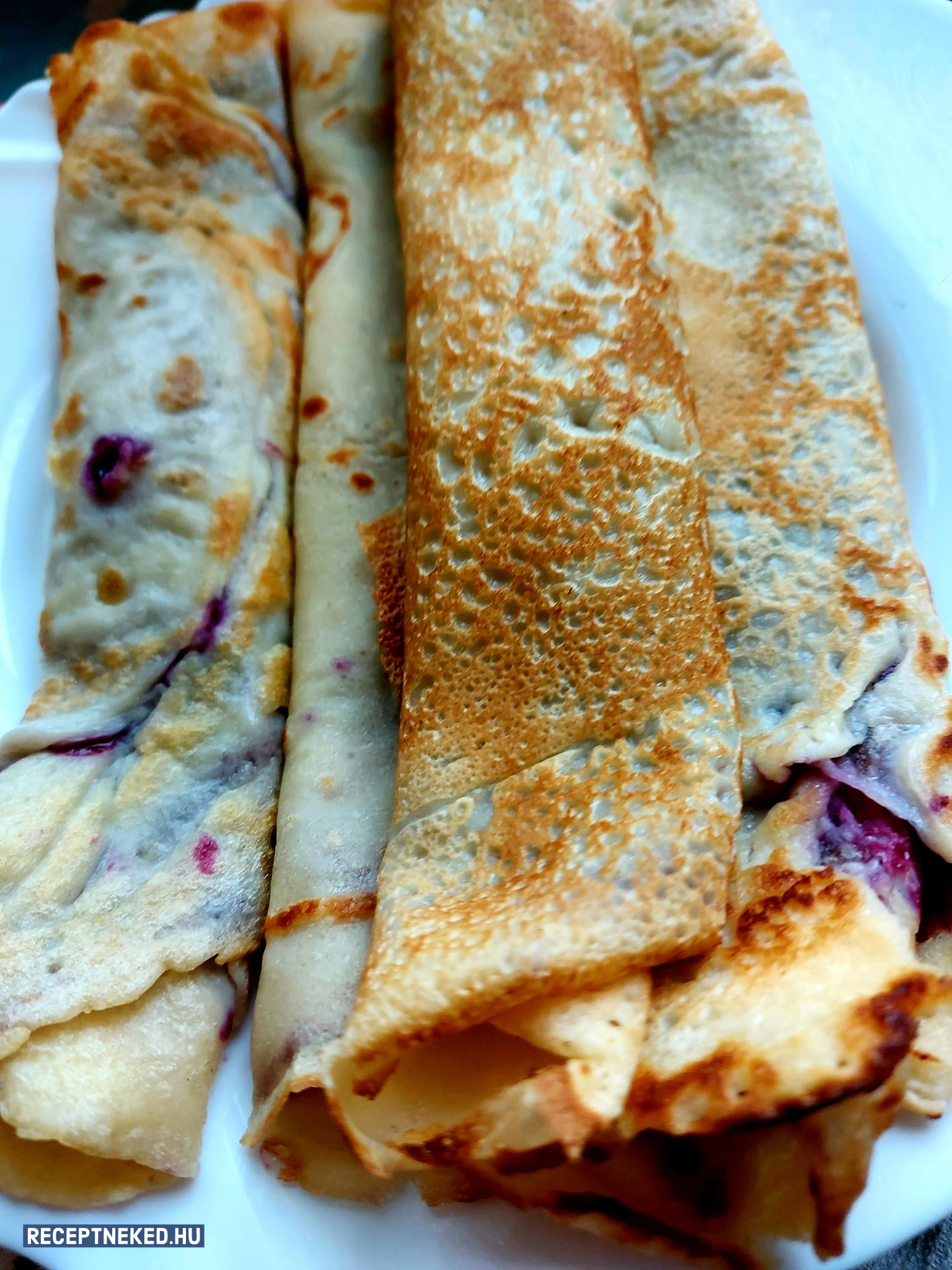 Hozzáadjuk az ásványvizet és az olajat, átkeverjük, majd kisütjük. Sütéskor tegyünk egy csepp olajat a palacsintasütőbe, hogy biztosan ne ragadjon le.