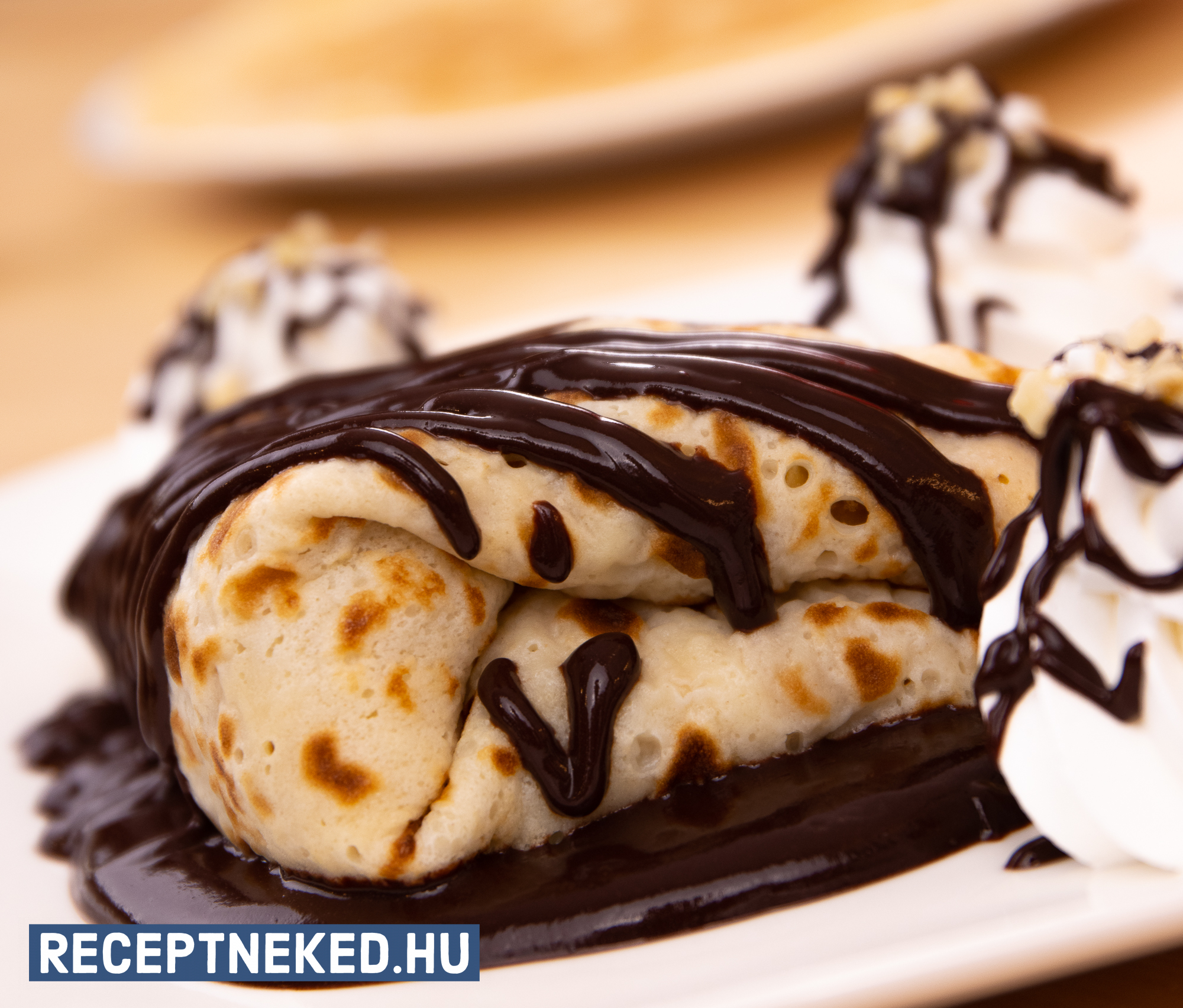 A palacsintasütőben kevés olajat melegítünk, majd a szokásos módon megsütjük a palacsintákat.