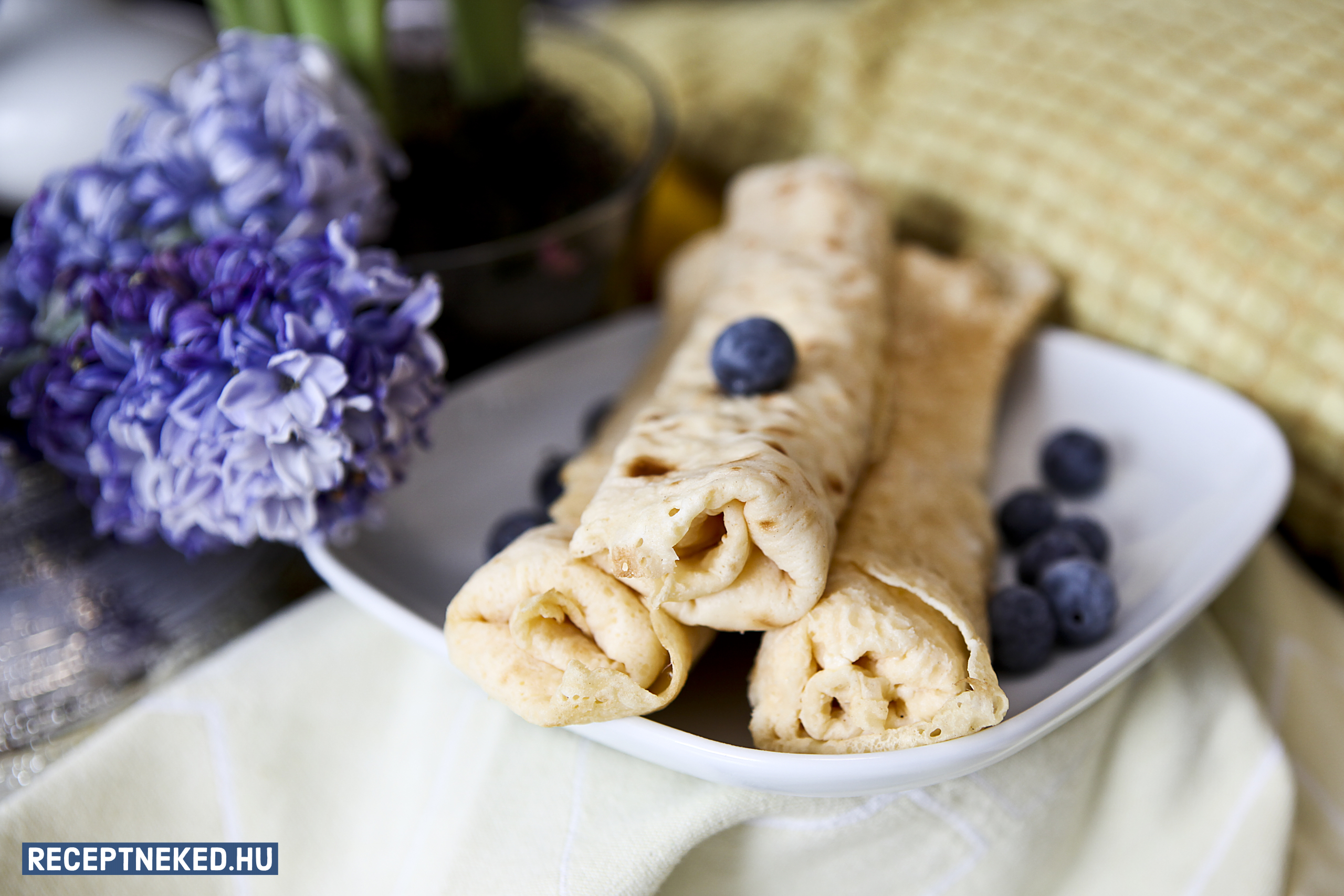Tálaláskor helyezzük tányérra a megtöltött palacsintát, csorgassuk rá a kapormártást, majd úgy kínáljuk.