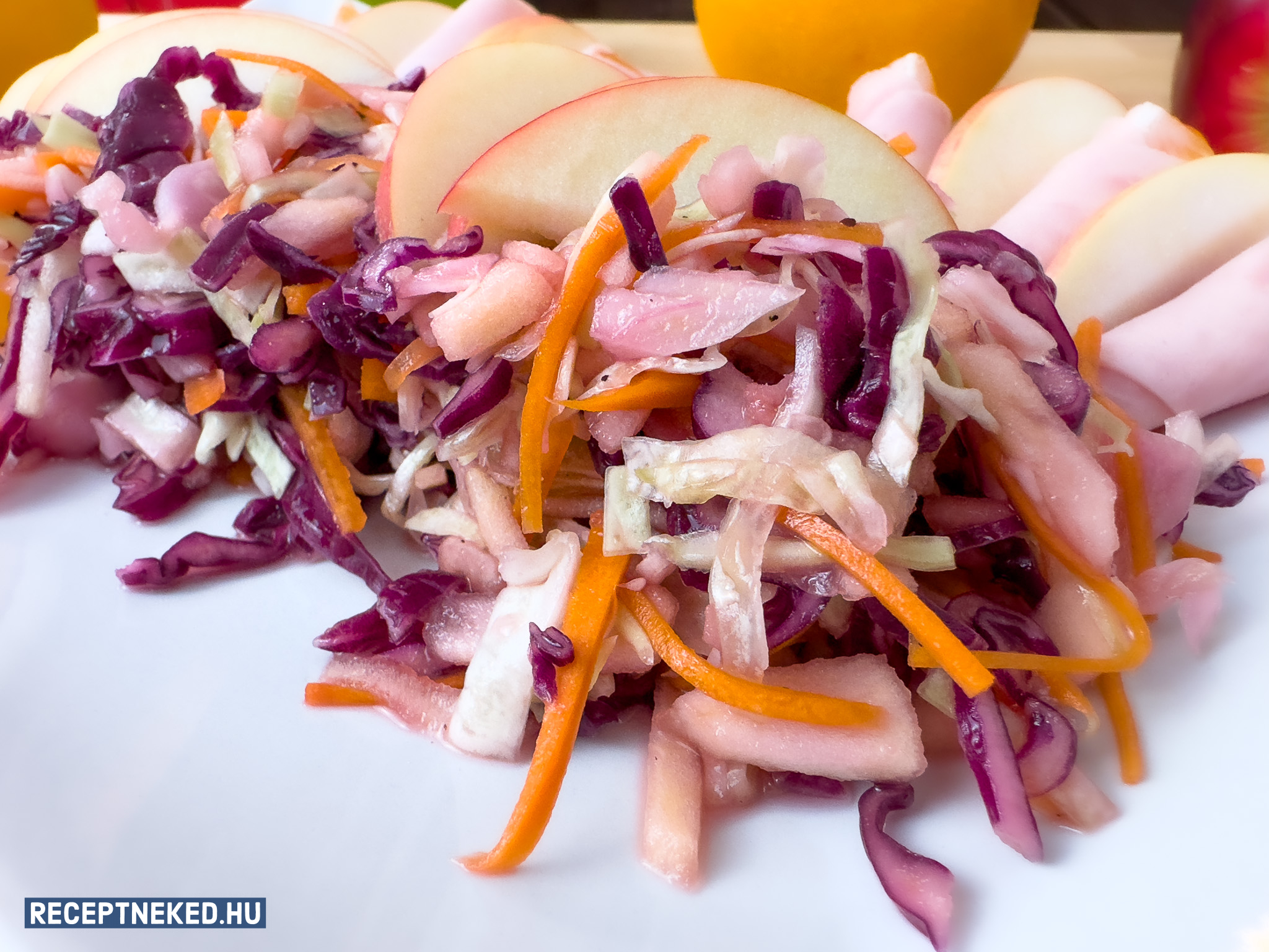 A hagymát meghámozzuk és vékonyra szeleteljük (ha a nyers hagyma bántja a gyomrod, akkor kissé sózd meg és hagyd állni kb 30 percig, majd mielőtt hozzákevernéd a salátához szűrd le, így nem fog gyomorbántalmakat okozni).