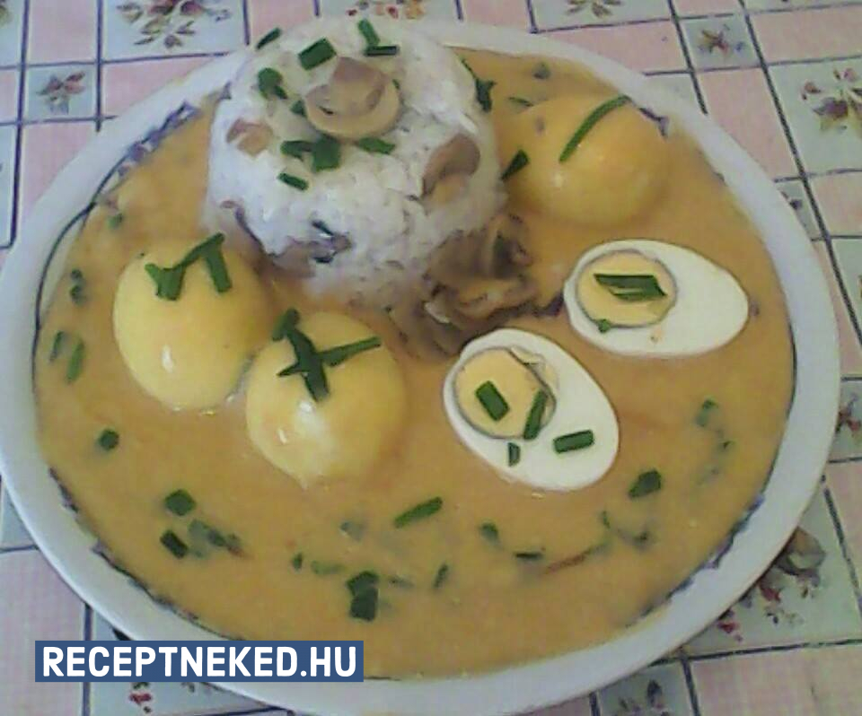 A tojást keményre főzzük, megpucoljuk, kihűtjük, majd feldraboljuk.