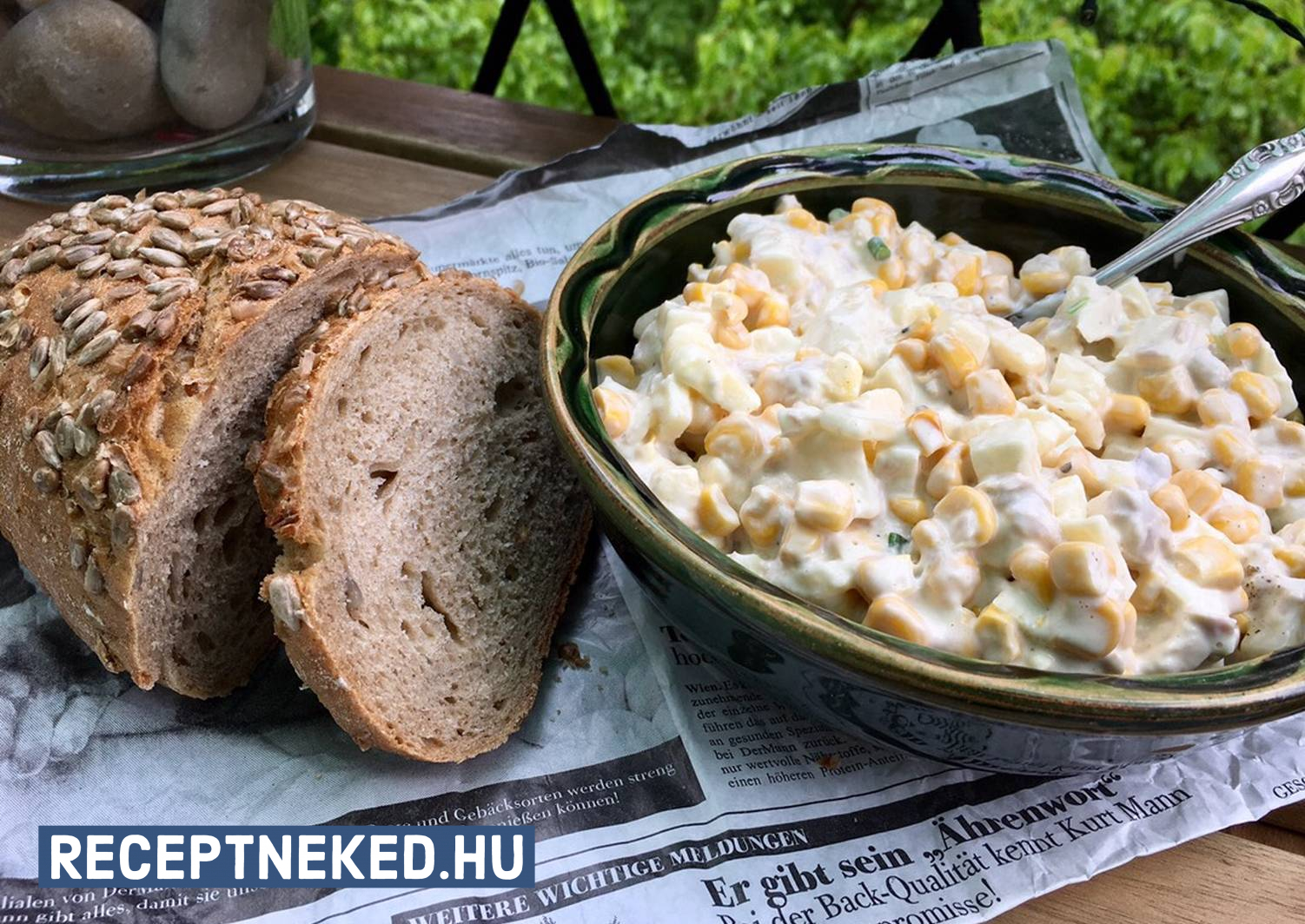 Öntsük le a levet a kukoricáról, majd tegyük bele a majonézes mártásba.
